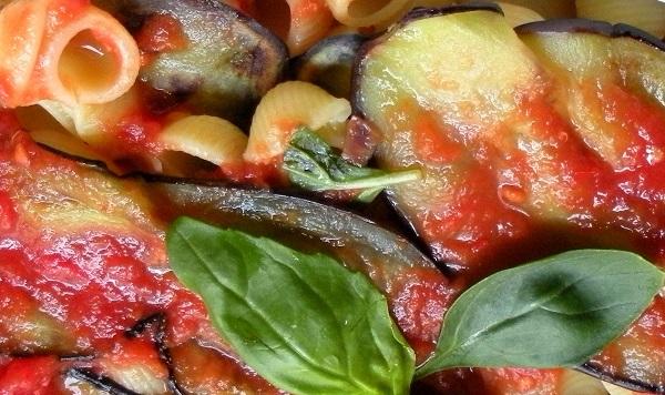 This delicious dish is a handy way of using up cooked pasta with eggplants.